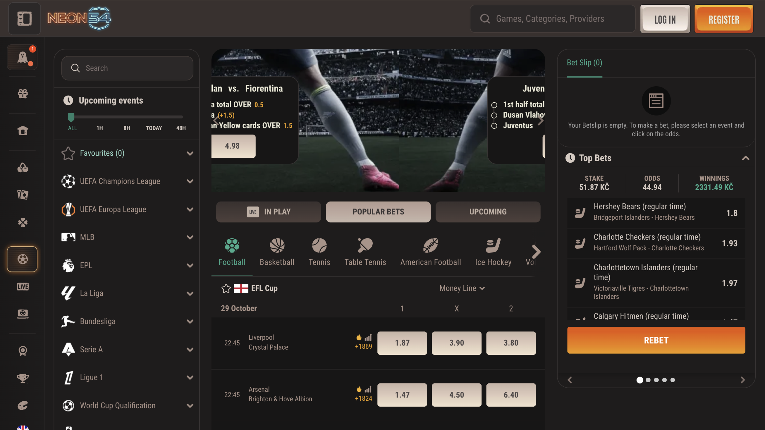 The welcome package at Neon54 reaches up to €500 with 200 free spins plus access to Bonus Crab, and multiple reload bonuses exist for regular users. Traditional sports, esports, and virtual sports betting sections operate alongside the casino games library. Live chat support functions 24 hours per day, and payment methods include standard banking options as well as cryptocurrency. The site adapts to mobile devices without requiring any app download. This Neon54 Casino review covers all essential information about game selection, payment speeds, bonus structures, betting markets, and customer support quality at Neon54. Advantages & Disadvantages of Neon54 Casino Advantages Combined casino and full sportsbook under one account at Neon54 Multiple weekly reload bonuses for casino and sports sections at Neon54 Bonus Crab feature provides random rewards for depositors at Neon54 VIP programme with up to 15% weekly cashback for top tiers Accumulator boost increases multi-bet winnings up to 100% Separate cashback programmes for sports and live casino Cryptocurrency payment options available 24-hour live chat support access Esports and virtual sports betting markets No app download required for mobile access Disadvantages Welcome bonus wagering requirement stands at 35x for casino funds Free spins release in batches over 10 days rather than all at once Neon54 Casino Bonuses Casino games and sports betting bonuses are distinct at Neon54 Casino. Neon54 newcomers can choose a casino or sports first deposit bonus. Regular Neon54 users get weekly reload promotions, cashback, and Bonus Crab. Wagering requirements apply to any Neon54 promotional monies before withdrawals. VIP Neon54 users receive increased cashback and bonus limits. Casino Welcome Bonus New users at Neon54 Casino receive a first deposit package that combines bonus funds with free spins and Bonus Crab access. The bonus amount matches the deposit up to a maximum cap, and free spins credit over multiple days in smaller batches. Terms require completion of wagering before any bonus-related winnings can be withdrawn. Users must activate the bonus before placing any bets with their deposit funds, as the option expires once gameplay begins. More details: Bonus match is 100% up to €500 Package includes 200 free spins distributed over 10 days One Bonus Crab pick available with minimum €10 deposit Minimum deposit for full bonus is €20 Wagering requirement is 35x on bonus plus deposit amount Free spins require 40x wagering on winnings Bonus validity period is 10 days after activation Maximum bet per spin is €5 as bonus is active Free spins credit as 20 per day for 10 consecutive days Each batch of 20 spins expires after 24 hours if unclaimed Neteller and Skrill deposits do not qualify for this promotion Sports Welcome Bonus Account holders who prefer sports betting can claim an alternative first deposit bonus designed specifically for the sportsbook section. This bonus requires users to complete rollover requirements through settled sports bets rather than casino play. Minimum odds restrictions apply to qualifying bets, and the bonus releases after the wagering conditions are met. More details: Bonus match is 100% up to €100 Enhanced limit of €200 for select countries Minimum deposit is €20 Wagering requirement is 6x on bonus plus deposit Single bets must have minimum odds of 2.00 Multi-bets require minimum odds of 1.50 per selection Only settled win or lose bets count towards wagering Weekly Casino Reload Every Monday through Thursday, users can claim a set of free spins on their first deposit of the week. This promotion runs automatically for all eligible users and credits spins on a selected slot game. Terms specify that users must opt in each week and complete minimum deposit requirements to qualify. The free spins must be used within 7 days or they expire, and winnings require wagering before withdrawal. More details: Reward is 50 free spins Minimum deposit is €20 Free spins wagering requirement is 40x Spins credit automatically with qualifying deposit Maximum bet limit of €5 applies as bonus is active Spins set to minimum bet value on selected game Sports Weekly Reload Sports betting fans can claim a weekly reload bonus calculated as a percentage of their first deposit during any seven-day period. This promotion requires users to complete the full deposit playthrough at minimum odds before the bonus credits to their account. Users must contact support after meeting the requirements to receive the bonus funds. The bonus amount varies based on deposit size and user location. More details: Bonus match is 50% up to €500 Available once per week from Monday to Sunday Minimum deposit is €20 Deposit must be wagered 1x at minimum odds of 1.50 Bonus requires 8x wagering after credit Single bets need odds of at least 2.00 Multi-bets require 1.50 odds per selection Lower limits apply for certain countries Weekend Reload Bonus Friday through Sunday brings an enhanced reload promotion that combines bonus funds with free spins for higher deposits. The percentage match increases compared to weekday promotions, and additional free spins become available when deposits reach the higher threshold. This weekend-specific bonus helps regular users boost their bankroll at the end of each week. Terms mirror those of other casino bonuses, including wagering requirements and validity periods. More details: Bonus match is 50% up to €700 Additional 50 free spins for deposits of €50 or more Available Friday 00:00 to Sunday 23:59 UTC Minimum deposit is €20 for bonus only Deposit €50 to receive free spins as well Wagering requirement is 35x on bonus plus deposit Free spins require 40x wagering on winnings Bonus validity is 10 days after activation Maximum bet limit of €5 applies Sports Cashback Users who face losses in the sports section during the week can recover a portion through the cashback programme at Neon54. This promotion calculate